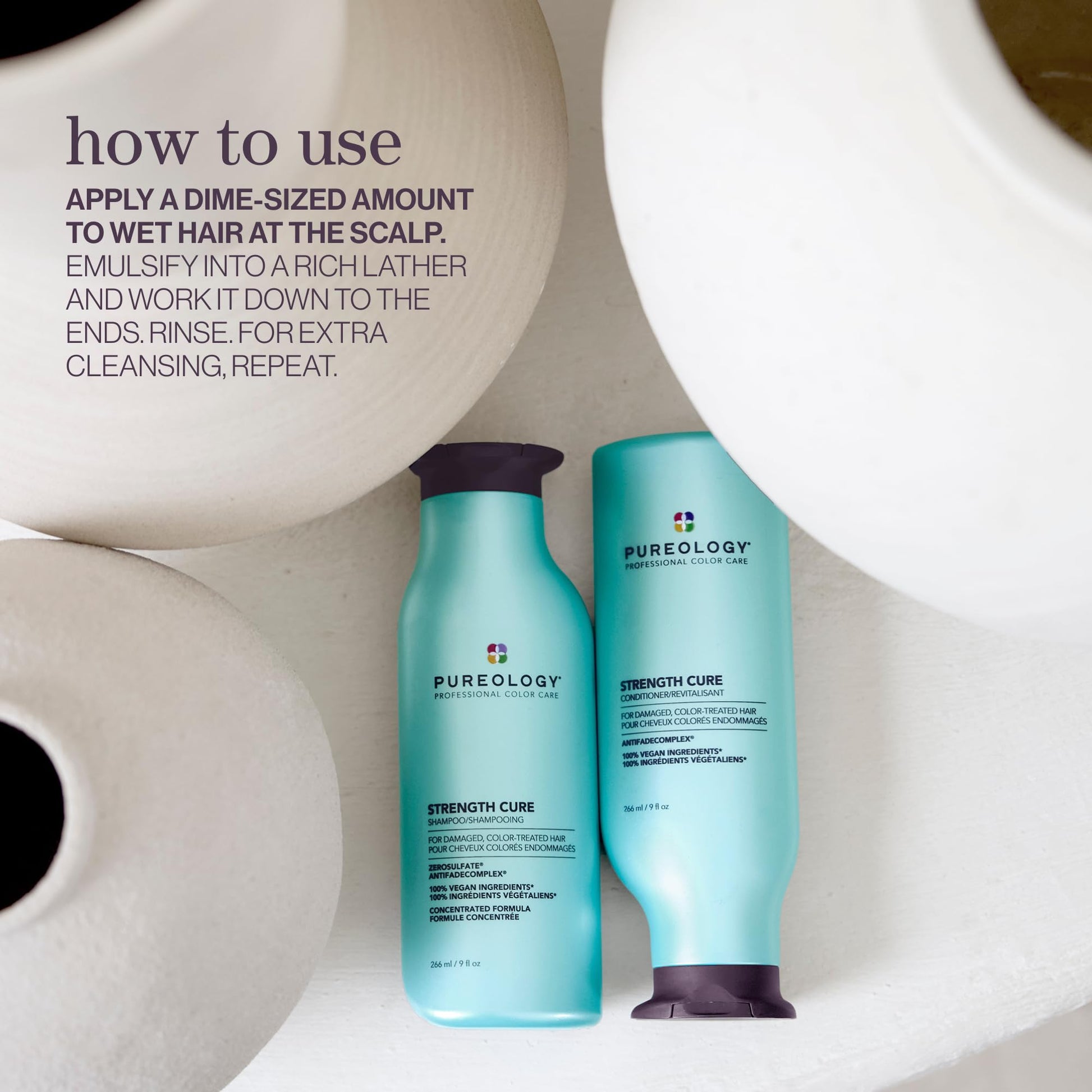 Pureology Strength Cure Shampoo, Strengthening Shampoo, Helps Repair Damaged, Color Treated Hair.Renews Strength and Softness, Vegan, Sulfate-Free, Paraben-Free,